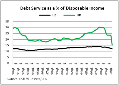 Recognising this vulnerability, the actions of the Fed since the onset of the crisis are easier to comprehend. With such a large quantum of debt it was imperative to reduce the cost of servicing it. Policy rates were cut to zero. However, the Fed’s aggressive interest rate cuts had only a mild impact on the servicing of household debt in America with its preponderance of callable fixed rate mortgages.  The effect was more pronounced in the UK where mortgage lending was predominantly variable and rates were previously priced off the one-year swap with only modest additional term and counterparty premium. Arguably, the institutional differences between the two countries’ mortgage markets made QE almost inevitable, in the US at least. Last year the Fed bid for probably a third of the outstanding stock of ten year Treasuries; the Fed’s holdings climbed from $450bn in early 2008 to $767bn at present day. But they had to concentrate the majority of their ammunition on purchasing mortgage backed securities, buying over a trillion dollars’ worth, to ensure that the cost of servicing the household sector’s debt would not rise on the back of elevated risk aversion in the banking sector. I salute this round of easing.
