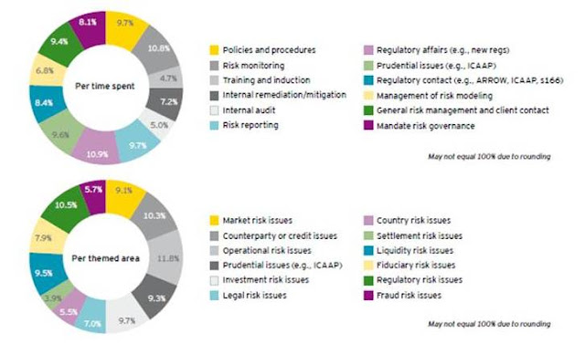 Rather like IT spend in an asset management business, it seems that most of the budget (budget of the time in this case) is on the hygiene factors – the necessary operational systems (activities). At the moment there is lot of hygiene stuff to take care of in risk management in asset management businesses – tax related issues, KIIDs, increased burden of regulatory reporting and compliance, liquidity issues and not least counterparty issues.